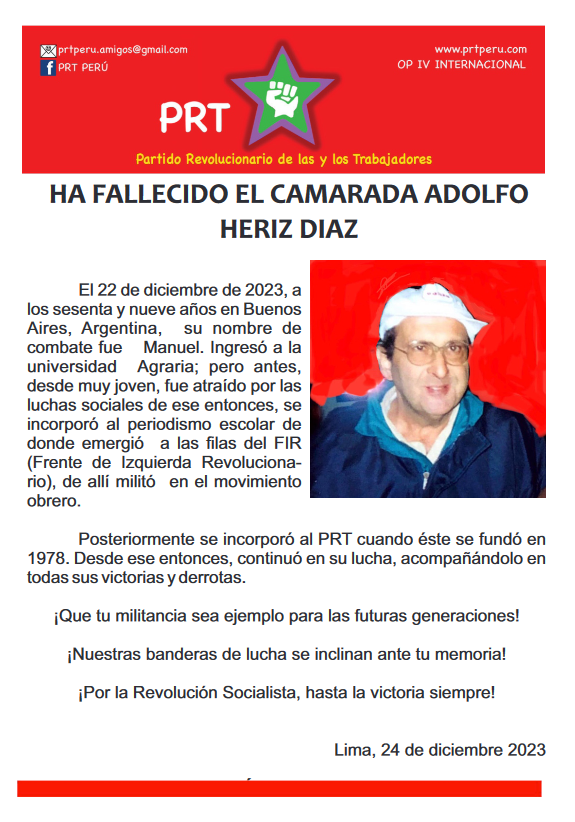 HA FALLECIDO EL CAMARADA ADOLFO HERIZ DIAZ